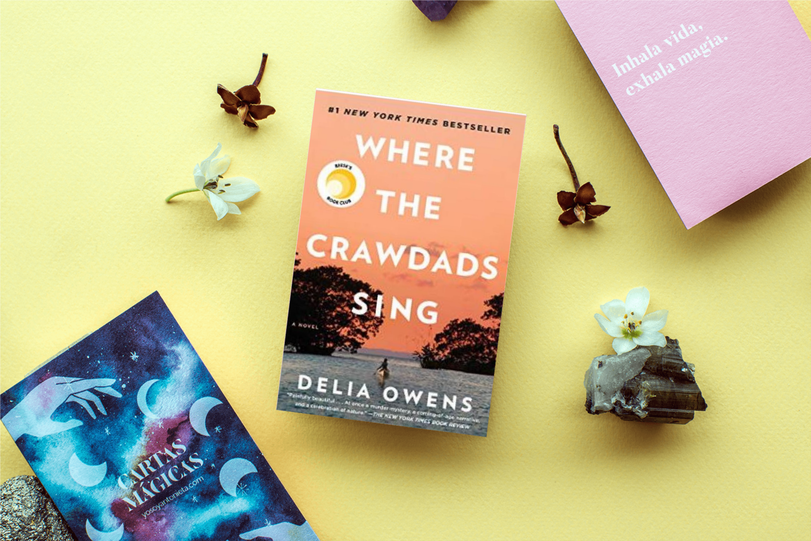 Mock 198 All Hardback Paperback Mockup 198Mockup 198Feature book on yellow with flowers and 2 other books
