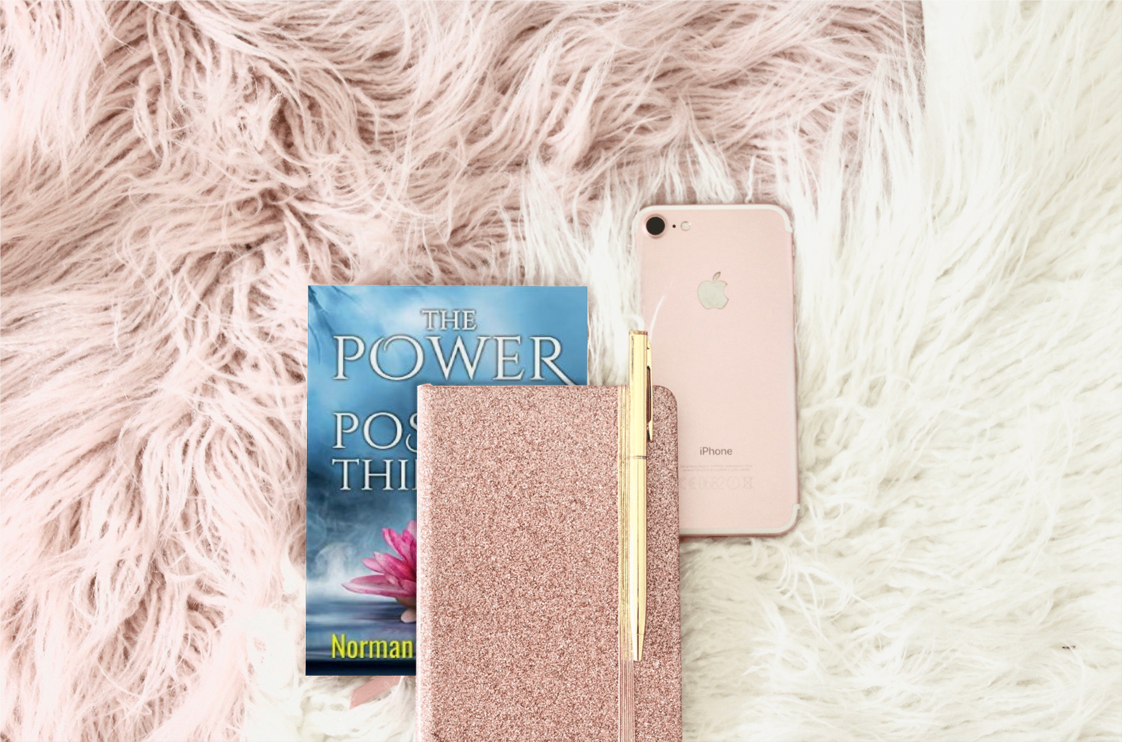 Mock 69 All Hardback Paperback Mock 1Mockup 69Book on pink and white rugs with pink notebook with gold pen and pink phone